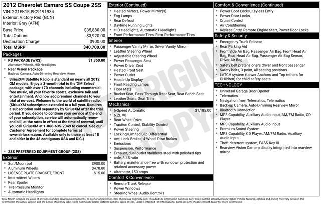 Discover the thrill of pure American muscle with this stunning 2012 Chevrolet Camaro SS 2SS. This head-turning sports car boasts a powerful 6.2L V8 engine, delivering an exhilarating driving experience that will leave you craving the open road. Adorned in a bold, eye-catching Red exterior, this Camaro exudes an undeniable presence that commands attention wherever it goes.