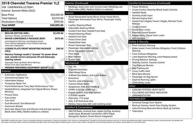 Discover the exceptional 2018 Chevrolet Traverse Premier, a versatile and well-equipped SUV that's ready to elevate your driving experience. With its striking Redline Edition styling, advanced safety features, and premium amenities, this Traverse is poised to exceed your expectations.