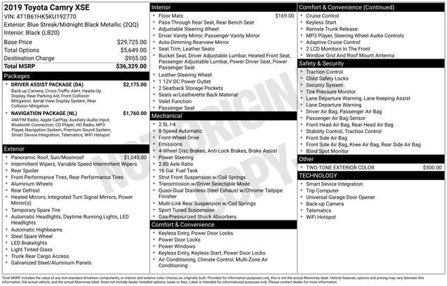 Discover the perfect balance of style, performance, and technology in the 2019 Toyota Camry XSE. Experience the difference that this exceptional sedan can make in your daily commute and beyond. Visit our showroom today to take this remarkable vehicle for a test drive and unlock the full potential of your driving experience.