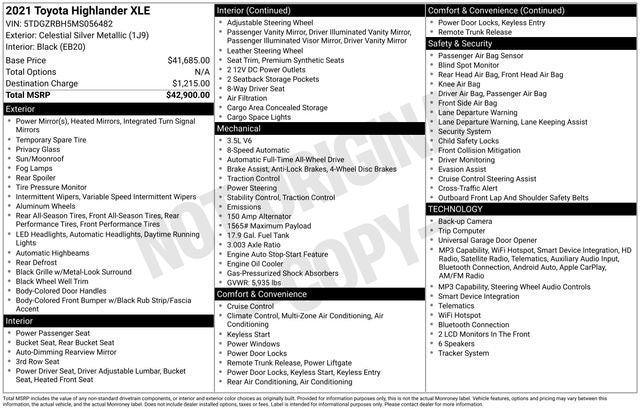 Experience the perfect blend of style, capability, and technology in the 2021 Toyota Highlander XLE. Schedule a test drive today and discover why this exceptional SUV should be at the top of your consideration list.